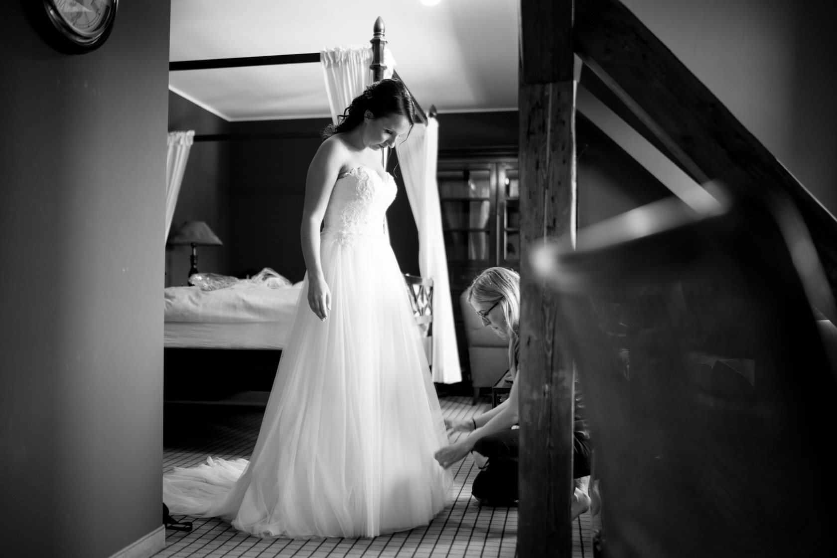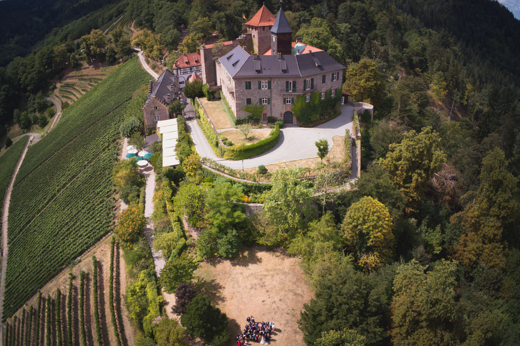 Am nächsten Morgen gings dann bereits um 8 Uhr los. Photobooth für Abends aufbauen, erste Luftaufnahme vom Schloss mit der Drohne machen und dann nichts wie hin zum Getting Ready von Braut und Bräutigam.